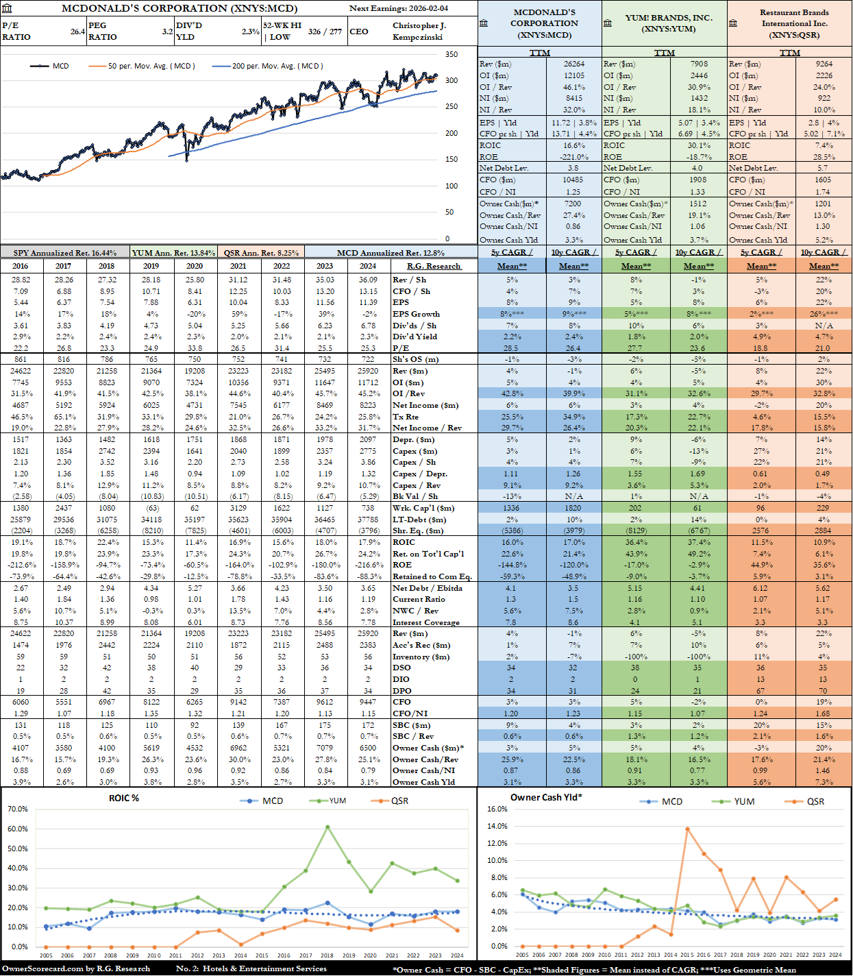 No. 2 - McDonald's, Yum! Brands & Restaurant Brands Int'lFinancial history of 3 quick-service restaurant businesses. R.G. ResearchDec 11, 2025ShareDownload PDF for full 3-page owner scorecard report.Owner Scorecard 2672KB ∙ PDF fileDownloadDownloadMCD Filings YUM Filings QSR FilingsAn enormously efficient way to garner information about various businesses.Subscribe